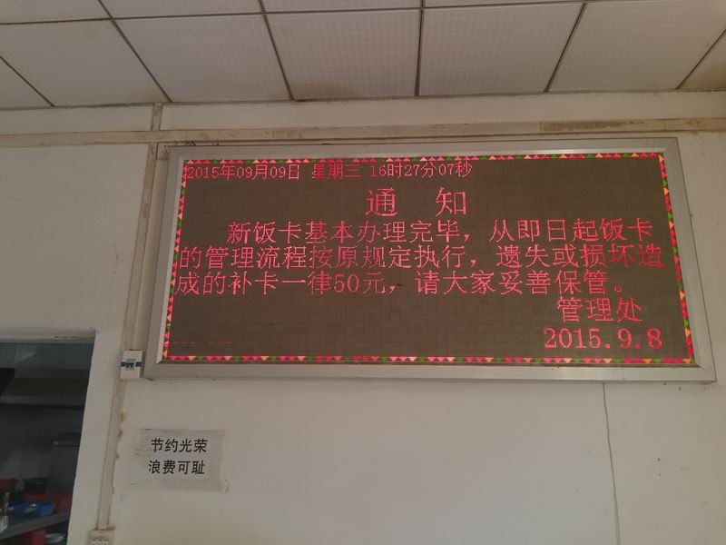 該單位與2015年8月16日安裝我公司食堂消費(fèi)管理系統(tǒng),完美的解決了以前因消費(fèi)系統(tǒng)功能不完善而造成的賬目混亂、消費(fèi)次數(shù)無法控制而造成的糧食浪費(fèi)、刷卡系統(tǒng)不穩(wěn)定而造成員工無法刷卡進(jìn)餐的諸多問題,LED屏幕也經(jīng)我公司維修后正常投入使用。