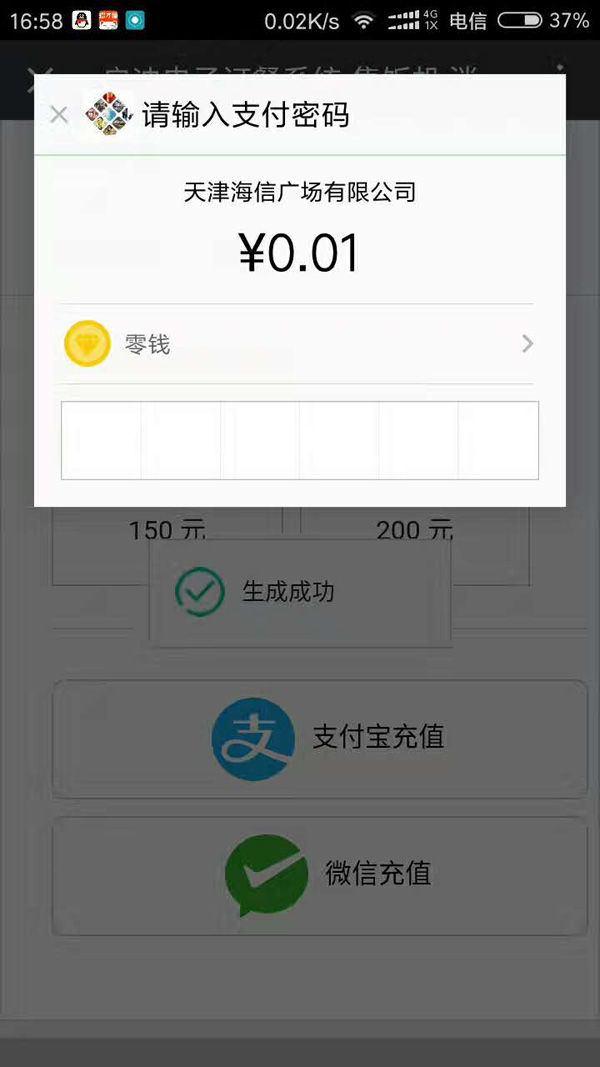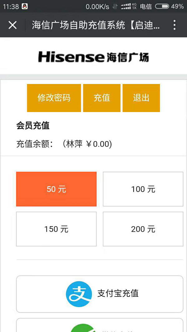 我司解決天津海信廣場3000名員工線上自助充值問題。