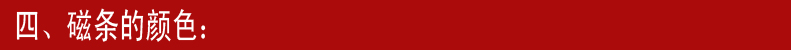 一般磁條顏色都為黑色,其它特殊顏色有金色磁條、銀色磁條、咖啡色磁條、綠色磁條、紅色磁條等特殊顏色的磁條。